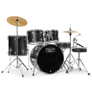 Tornado by Mapex is the ideal set for those taking their first steps on drums. A solid and reliable set, with a complete set of accessories, which allows you to play immediately. SPECIFICATIONS Acoustic drum set 5 pieces 9 Ply Poplar Shells, 7,2mm 22x18 case Tympanum 16x16 Tom 13x10 - 12x9 14x5 snare drum Hi-Hat Pedal Plate support Snare stand Booster seat Hihat 14 crash 16 Black Sparkle finish